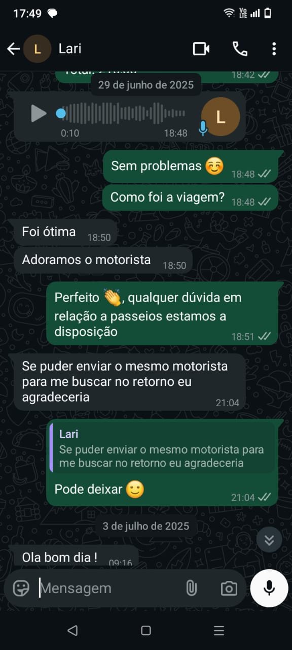 “Decidi dar uma chance à Fly Receptivo em Recife e que diferença! Atendimento personalizado desde o aeroporto, dicas precisas e aquele jeitinho nordestino de receber fizeram toda a diferença. Minha família adorou o passeio especial. Agora não viajo mais pelo Nordeste sem a Fly!